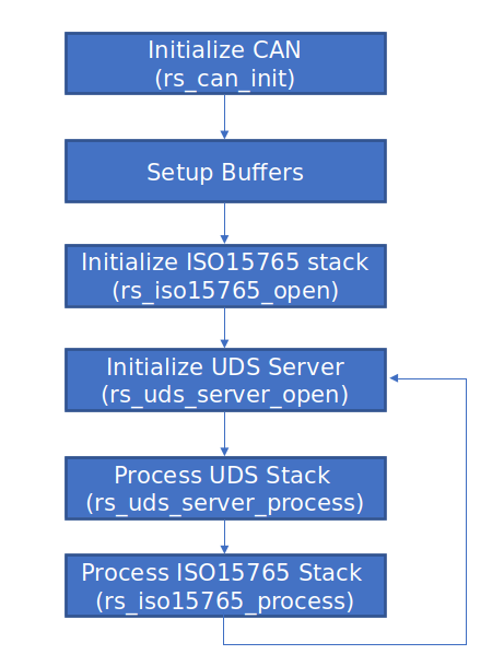 The UDS server communicates over the CAN network through the underlying DoCAN stack (ISO15765). This DoCAN stack is also available as part of the RAPIDSEA components. All the functions that are needed are available as part of the DoCAN stack and has to be compiled together.