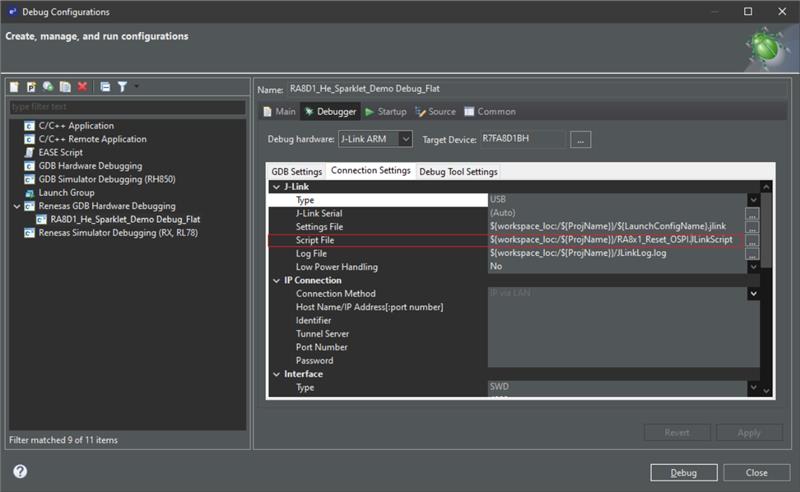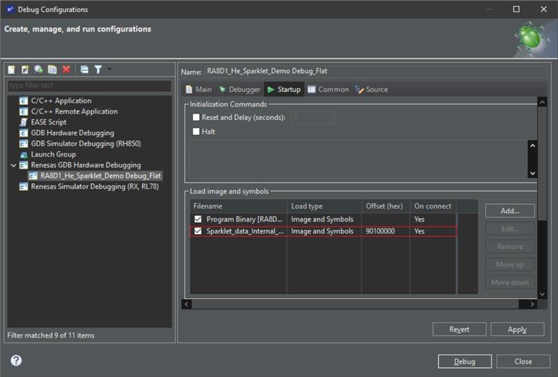 Select the Startup tab and under the Load image and symbols, click on Add button and select the bin file from the file system. Enter the offset address as 90100000 to load the bin file to that external flash.
